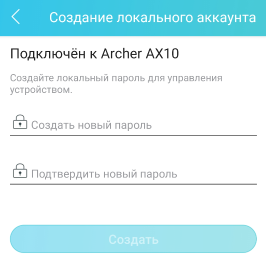 6. Придумайте пароль от настроек роутера и нажмите "Создать". Важно: это не пароль от Wi-Fi, его настроите позже.